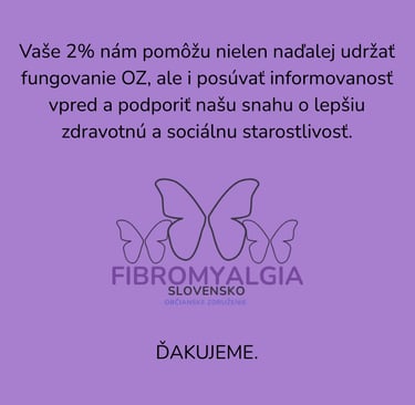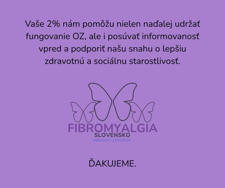Články zverejnené na tejto stránke majú informačný charakter a nenahrádzajú odbornú lekársku ani právnu konzultáciu. Slúžia na vzdelávacie účely a šírenie povedomia o fibromyalgii.